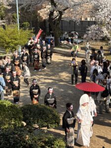 桜満開の高津神社で、ブライダル選択学生13名が作り上げた狐の花嫁行列。